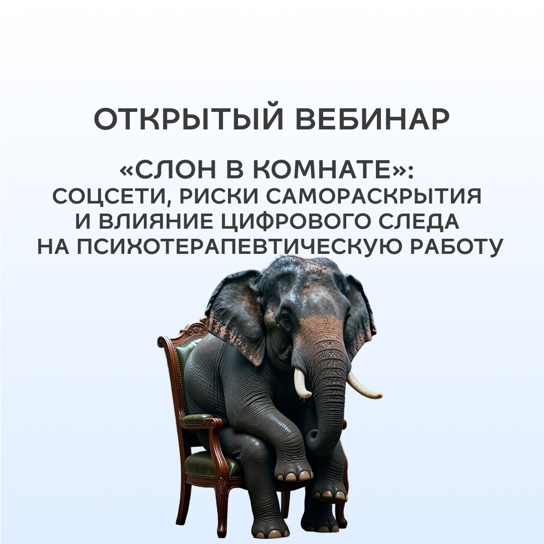 Эти вопросы остаются тем самым «слоном в комнате». На вебинаре мы поговорим о напряжении между классической психоаналитической позицией и реальностью цифрового мира, а также о том, так ли страшно присутствие терапевта в медиа сегодня.